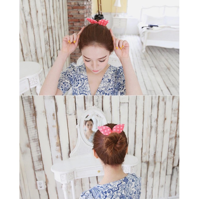 1. Cute Design: Our deft bun hair maker is shaped like rabbit ears and decorated with polka dots. When you put your hair into a bun, it looks like rabbit ears, which looks cute.