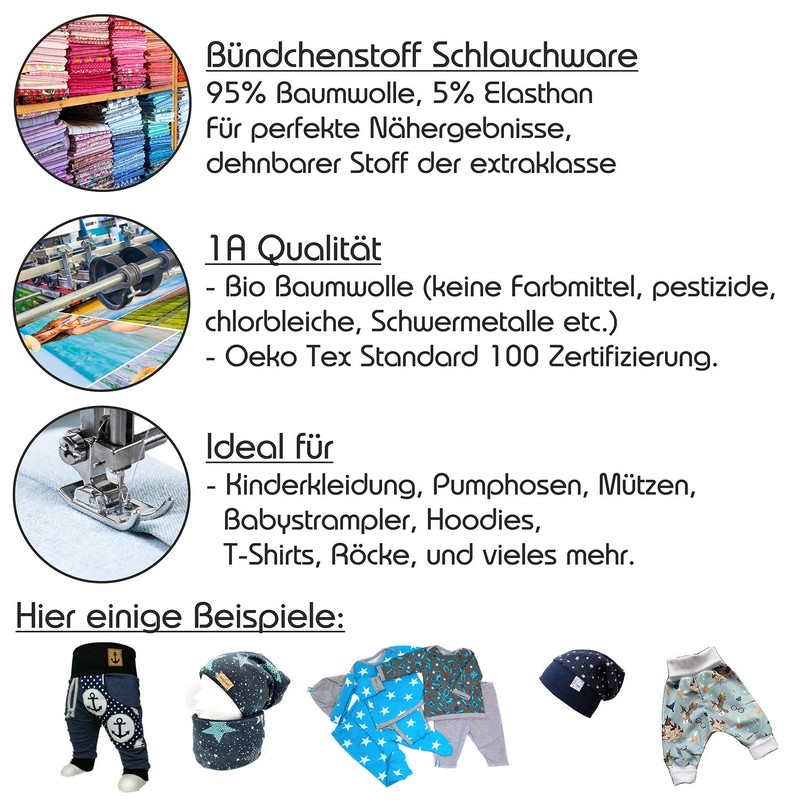 - Cuff fabric + jersey: our cuffed tubular fabric is ideal for children's and baby clothing. DIY fabric for sewing patterns and fabric cuts. Elastic yet sturdy.