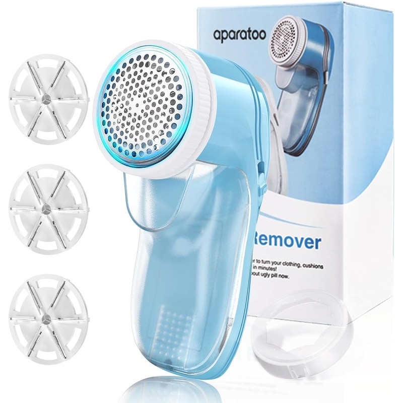 - đ§„ăQuick And Efficient Fabric ShaverăThis fabric remover comes with 3 replacement 6-leaf blades and with powerful speed. The combination of high quality blades and powerful motor will help you easily remove pilled, lint and fuzz balls from all fabric surfaces such as clothes, furniture and bedding sets. Gives your clothes, scarves, gloves, plush toys, sofas, carpets, cushions and quilts a fresh look in just a few minutes.