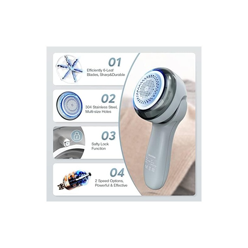 • ✨【Quick and Efficient Fabric Shaver】This fabric remover comes with 3 replacement 6-leaf blades and with 2 speeds. The combination of high quality blades and powerful motor will help you easily remove pilled, lint and fuzz balls from all fabric surfaces such as clothes, furniture and bedding sets. Gives your clothes, scarves, gloves, plush toys, sofas, carpets, cushions and quilts a fresh look in just a few minutes.