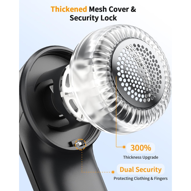 - 【Multiple Safety Protections】This fuzz remover fabric shaver is equipped with a safety lock with a safety lock, the fabric shaver automatically stops when the mesh cover is loosened or removed, ensuring the safety of you and your family. The reinforced mesh cover offers 300% increased durability, providing reliable protection for your fabrics without scratches or marks