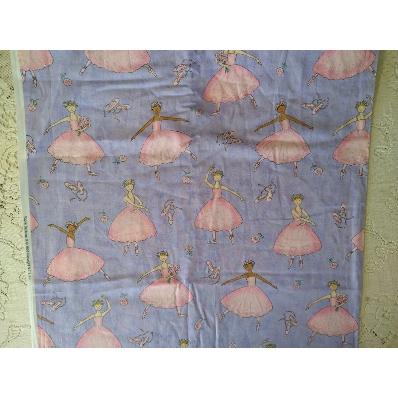 Fabric Traditions 1999 Pink & Lavender Ballerinas Glitter Slippers BTHY 18x45"