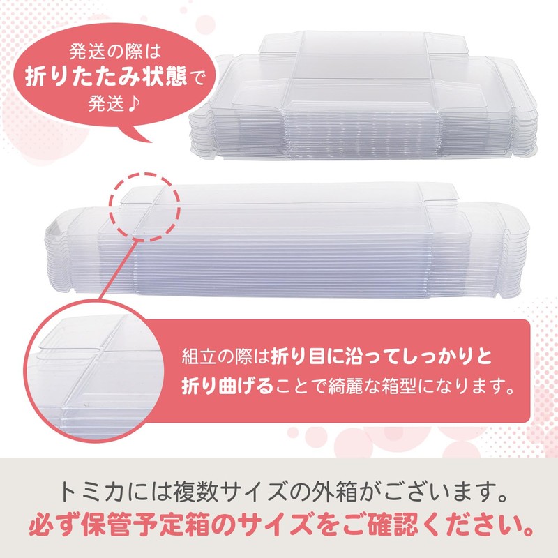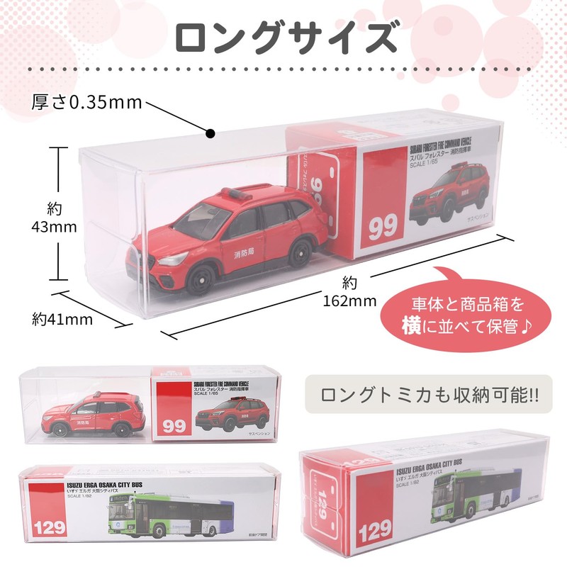 Tomica storage size only. Clear case for sale. Transparent case protects your precious car's from dirt and dust when stored in your collection. Double Size (2 Tiers): The size allows you to store the mini car and box side by side. Store with box for an even better display presentation Long Size: The size allows you to store the mini car and box side by side. Accent your collection with a different way to display your collection It also fits long (large) sizes so you can use it to store long Tomicas. Please note the size: There are 2 sizes for Tomica (small size (rectangle on the side) and large size (square on the side). This is a suitable size for large size, so please make sure to measure your mini car before purchasing. [Variations] Available in 2 sizes, including double (large) and long (large). We also offer a set for those who want to decorate 2 patterns. This product is a general-purpose aftermarket product. Please note that this is not an official product.