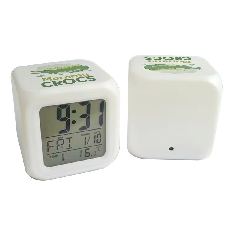 Fabulous Mommy Crocs and Her Baby Crocodile Drawing Wecker, beleuchtet, Weiß, 7,8 x 7,8 x 7,8 cm – Retro-Beleuchtung, mehrfarbig, LED