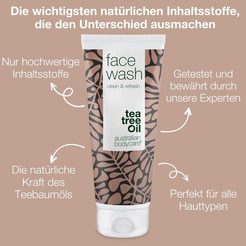 - 🌿 PRODUCT INFO: What's in the product? Our face wash gel Face Wash contains 100% natural Australian tea tree oil. The unique composition of natural ingredients moisturises the skin and helps with pimples and other blemishes. All Australian Bodycare products are dermatologically tested and 100% vegan.