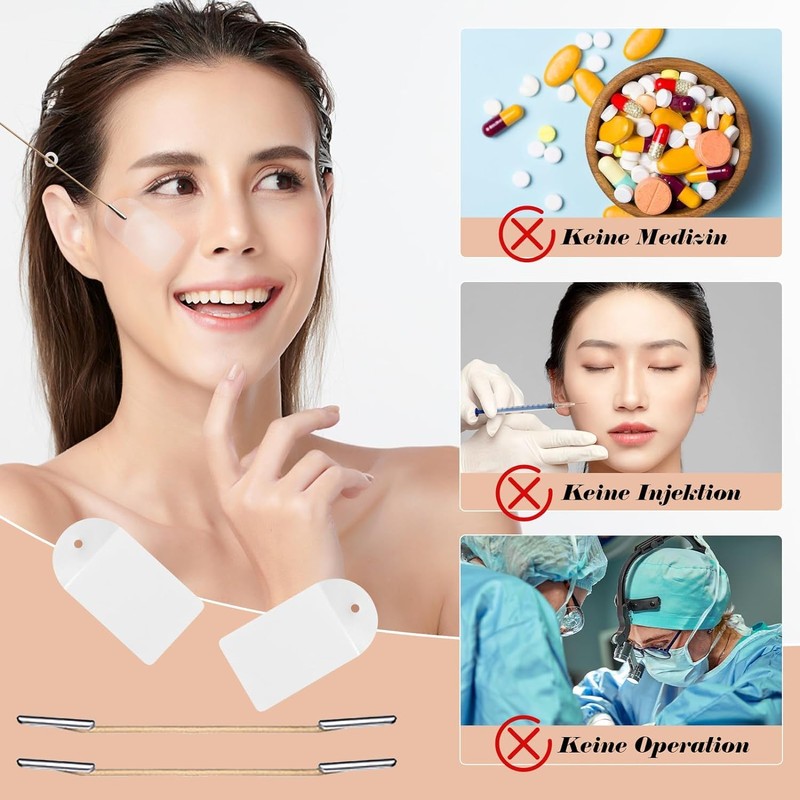 - Product includes: contains 80 stickers facelift tape and 8 lifting ropes. The sticker is 5 cm long and 2.5 cm wide. The rope has four different lengths, namely 6.5 cm, 9 cm, 15 cm, 22 cm.