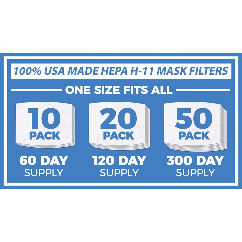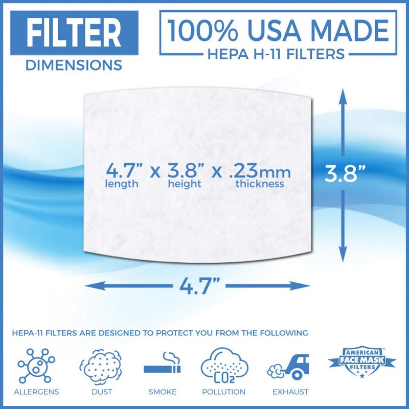 - HIGHEST-QUALITY MATERIALS: Our 100% USA Made Melt-blow HEPA H-11 Filters ARE NOT THE PM2.5 FILTERS COMING OUT OF CHINA. Our filtration is the same as N95, nearly twice the filtration of PM2.5 filters.