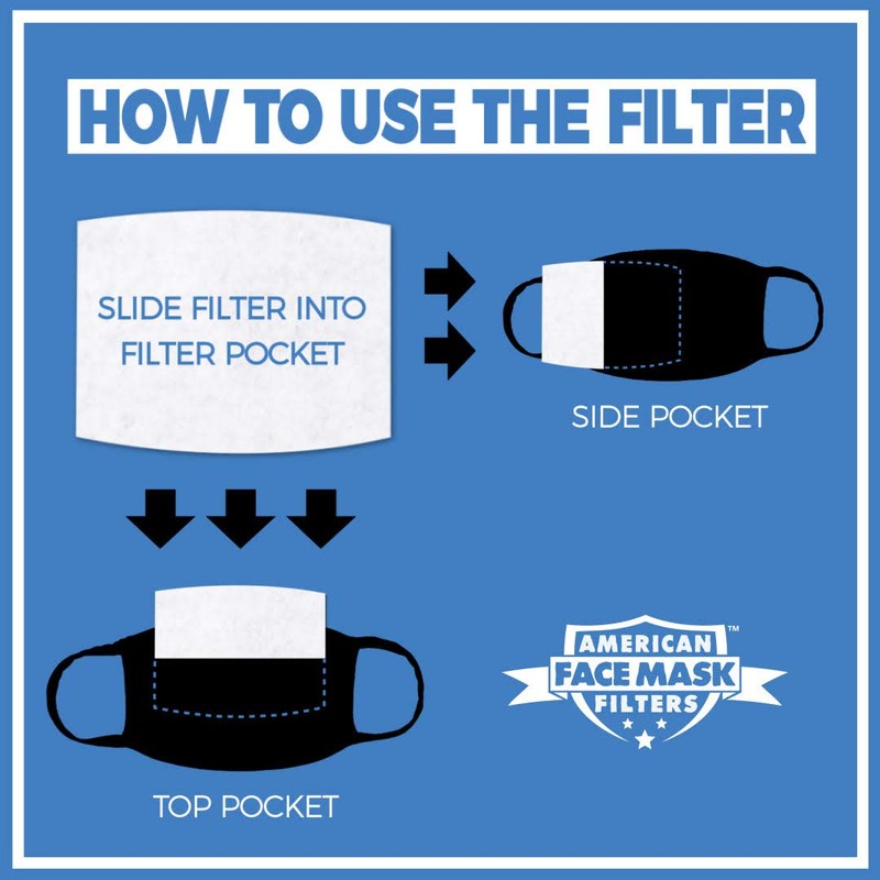 - EASY TO USE: Simply take one of our American made filters and slide it in to the side or top pocket of your mask. It doesn't matter which direction the filter is inserted. Filters are made to fit most masks but are easily trimmed with household scissors if necessary. Use each individual filter up to 10 days total.