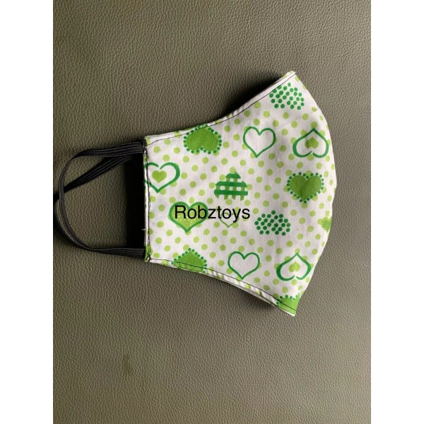 Face Mask  triple Layer Handmade Washable Cloth Green Heart