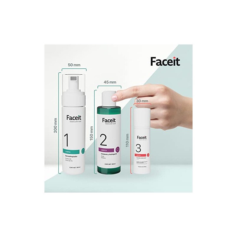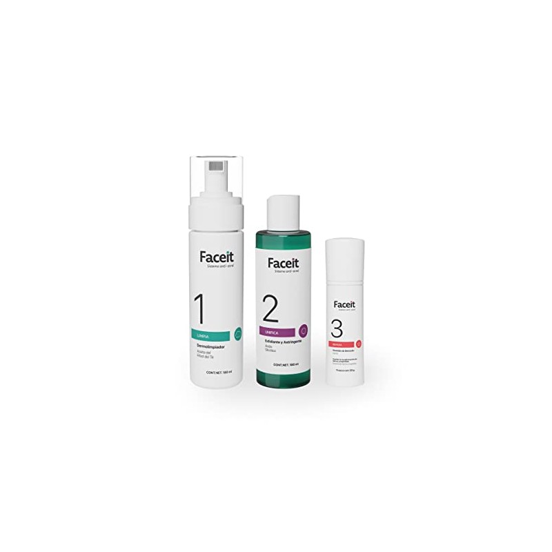 FACEIT Rutina para Combatir Acn de 3 Pasos Limpia, Unifica y Repara tu Cara Perxido de Benzolo 5 y cido Gliclico Skincare Acn Leve a Moderado...