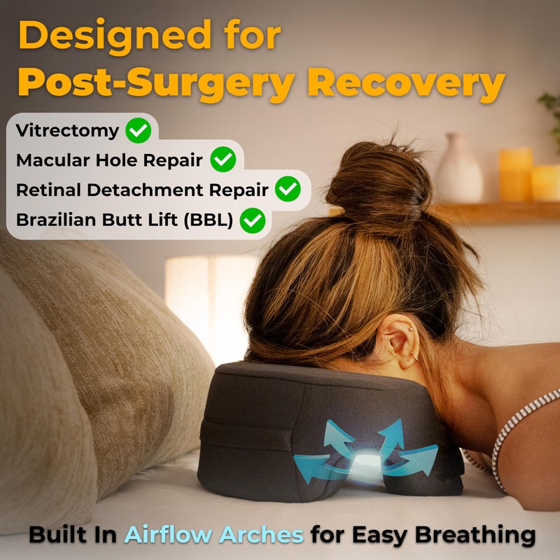- Post Surgery Recovery - Recovering is a breeze since Faceplant is excellent as a vitrectomy pillow or BBL pillow. If you recently had retina surgery or BBL surgery, then resting face down is vital for recovery. The structure of our pillow ensures you will have easy airflow while comfortably and safely resting. Straps on the front of the pillow allow for adjustments to the tightness based on your preference.