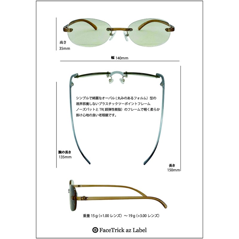 [FaceTrick az Label] オシャレで軽い老眼鏡 UV/近赤外線/ブルーライトカット鯖江メーカー高性能レンズ老眼鏡 クリアブラウンフレーム/ライトブラウンレンズ FTR01-2LB +1.50