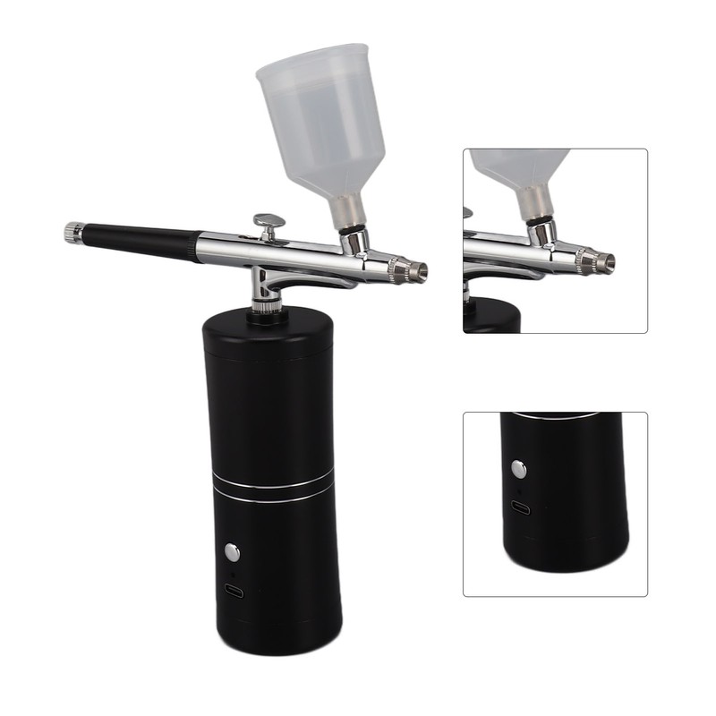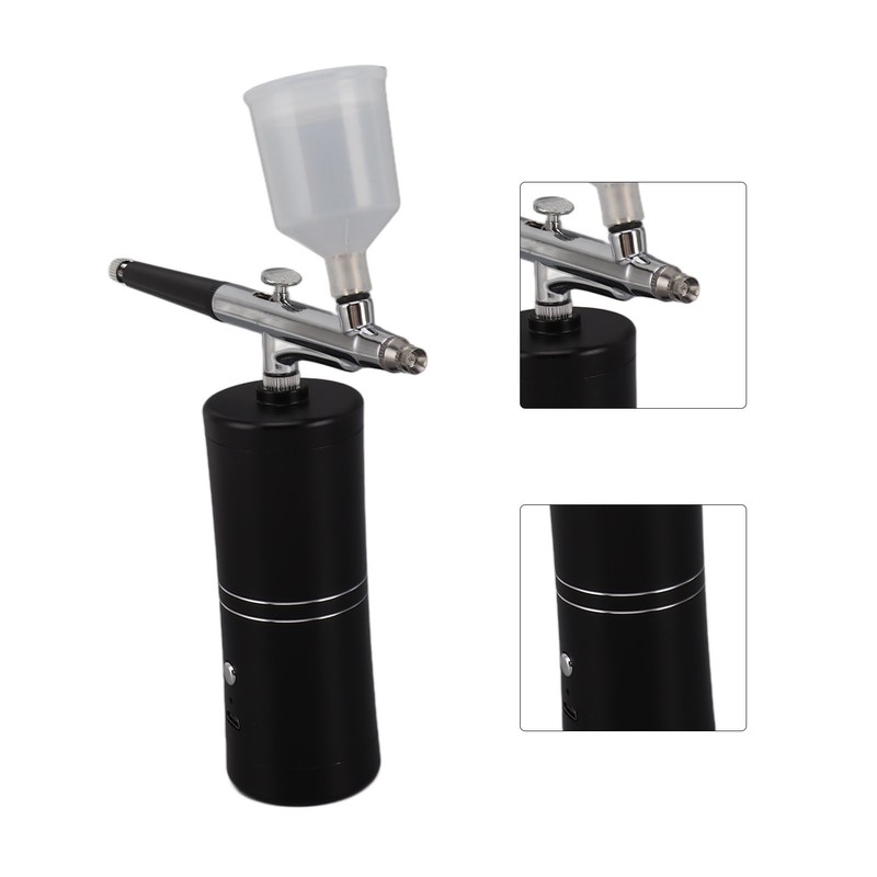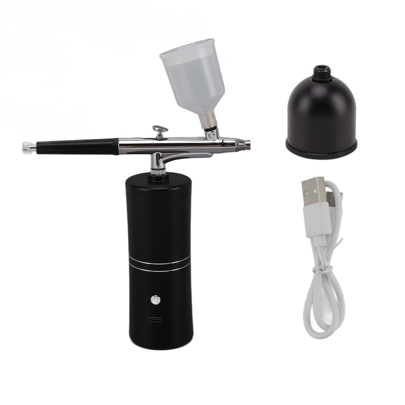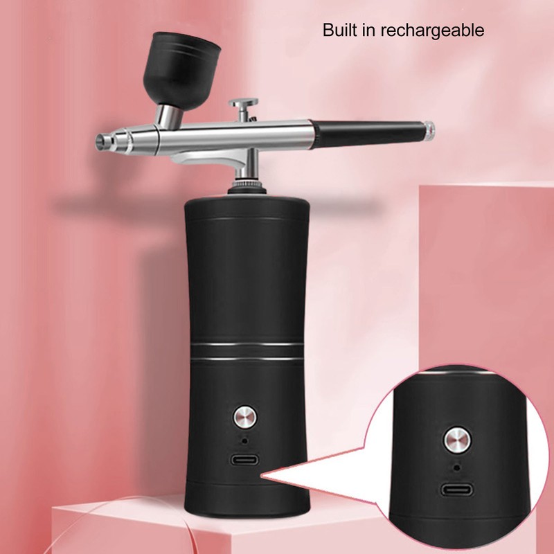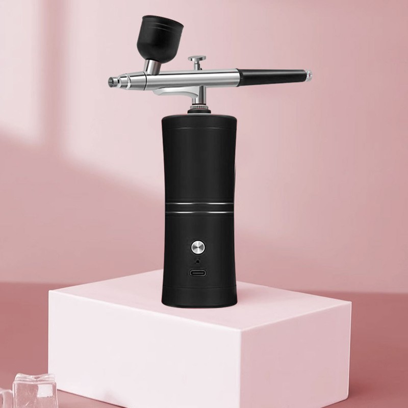 Facial Airbrush Machine Handheld Oxygen Injection Airbrush High Pressure Portable Facial Mist Moisturizing Sprayer Black 20ml
