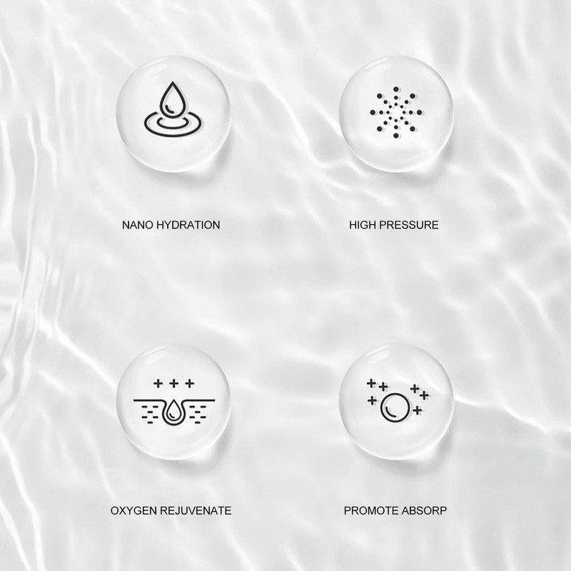 1、HIGH PRESSURE HYDRATION: It utilizes high pressure misting technology to finely atomize water, allowing it to penetrate deep into the skin layers for rapid and effective hydration. 2、DEEP SKINCARE PENETRATION: Its design ensures that the water particles are finely dispersed, enabling them to deep into the skinlayers. This deep penetration enhances the absorption of skincare productt. 3、PORTABLE DESIGN: It is designed to be compact and lightweight, allowing you to carry it in your handbag or pocket. This enables you to enjoy on the go hydration anytime, anywhere. 4、RECHARGEABLE DESIGN: With a built in rechargeable battery, you can easily use your device without the need for replaceable batteries or being restricted by power outlets. 5、MULTIFUNCTIONALITY: In addition to providing hydration, this machine can also be used for applying skincare serums, essences, and other products. While misting, it nourishes and moisturizes the skin.