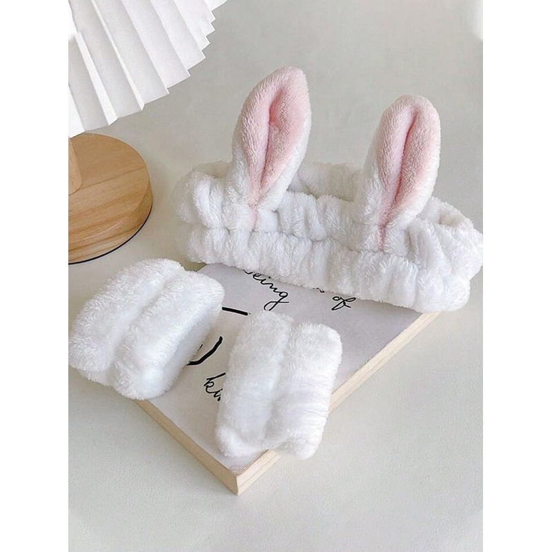 Facial Face Wash Headband, Skincare Wrist Bands For Washing Face Set Spa., Cute White Ears Elastic Headband, For Face Washing Makeup Skincare (White, Pastel Pink, Pink, Pastel Blue) (white, standard)