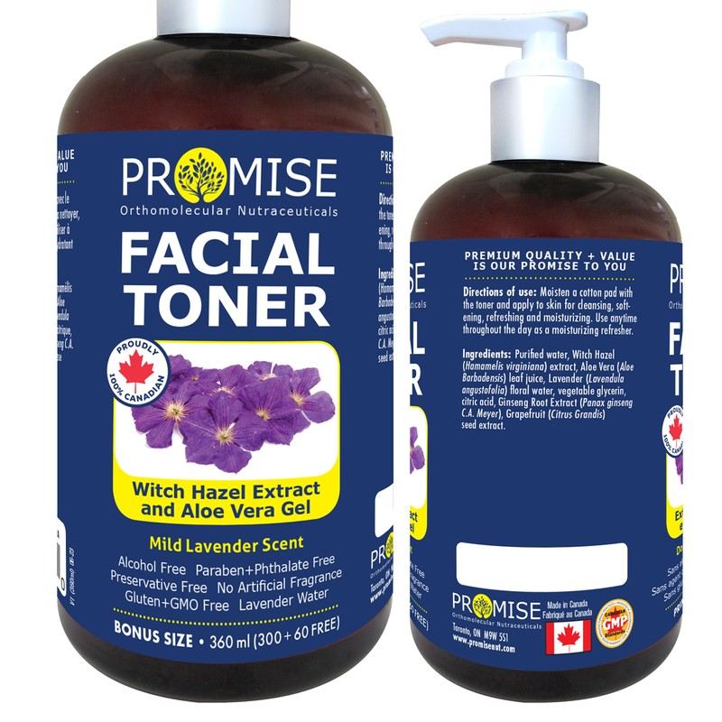 FACIAL TONER 360ml (12oz), Witch Hazel Extract and Aloe Vera Gel, Mild Lavender Scent, Made in Canada (Facial Toner, 360ml)