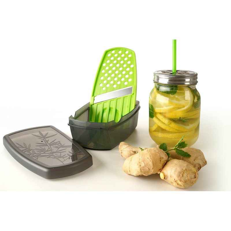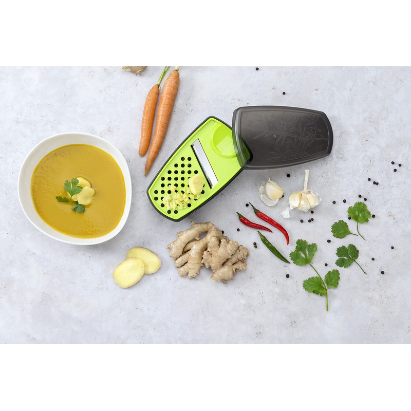 Fackelmann 45470 Ginger Grater, Slicer with Storage Container, Plastic, Grey and Green