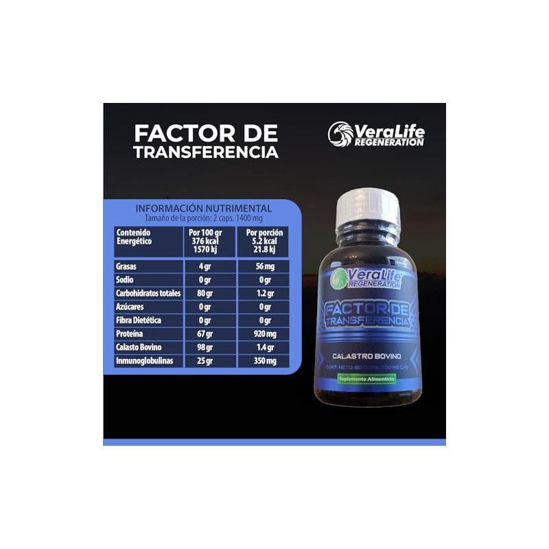 VERALIFE REGENERATION - Factor de Transferencia - A Base de Calostro Bovino y 25% Inmunoglobulinas | 60 Cápsulas de 700mg | Suplemento Alimenticio para Hombres y Mujeres | Sin Azucar y Calidad Premium | VeraLife. 🏆 Reconocido por su excelente relación calidad-precio. Materiales de alta gama y acabados premium. 💝 Perfecto como regalo especial. Ideal para quienes buscan lo mejor en calidad y estilo. Producto auténtico con satisfacción total asegurada. ¡No te quedes sin el tuyo y aprovecha esta oportunidad única!