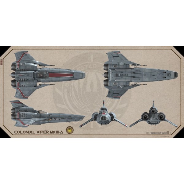 The Viper Mark III was the third generation of the Viper series of space-superiority fighters used by the Colonial Fleet. Introduced towards the end of the First Cylon War, as the successor to the venerable Mark II, the third-generation Viper was a single-pilot, multi-role strike ship. Its design inspired subsequential iterations of the multi-role Vipers in the years following the Armistice, culminating in the highly advanced Mark VII.