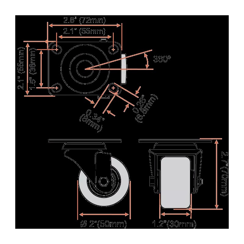 Caster Wheel Diameter: 2"(50mm)