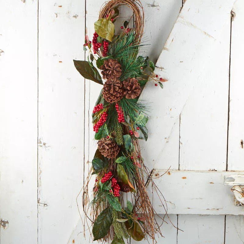 Artificial Grapevine and Pine Needle Holiday Hanger Swag with Red Berries.