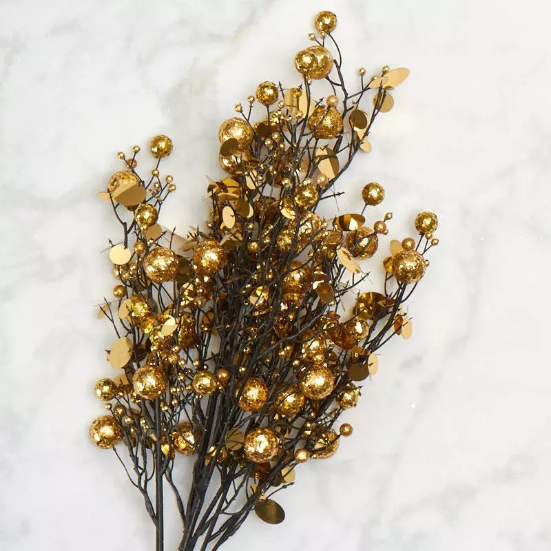 Insert this glitzy glitter ball and sequin accent bush to centerpieces, decorated trees, even wrapped packages. It will add that party feel to any table or display. | Count: 1 | Size: 24" L
