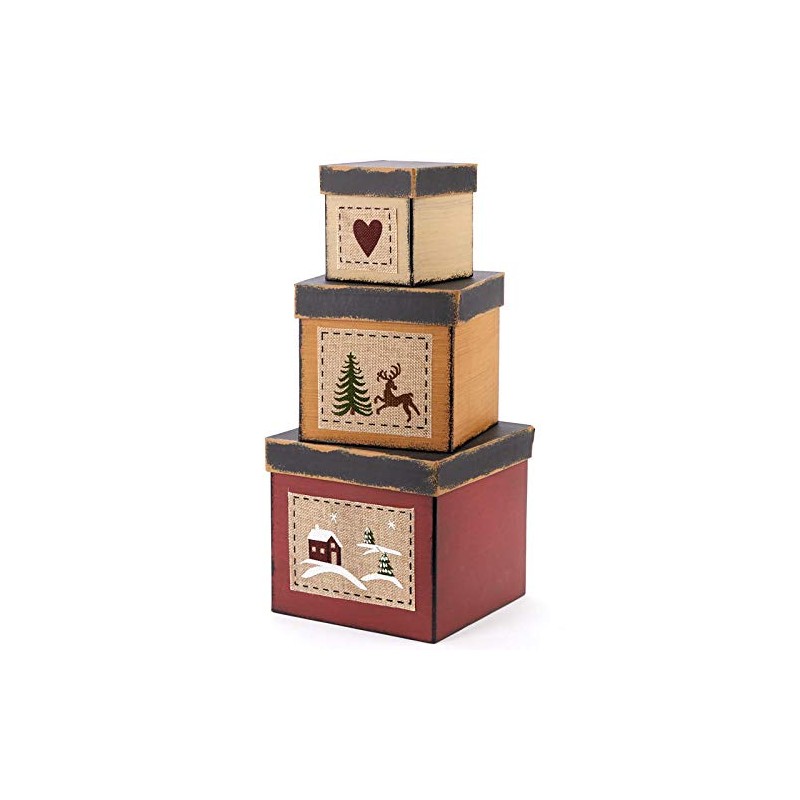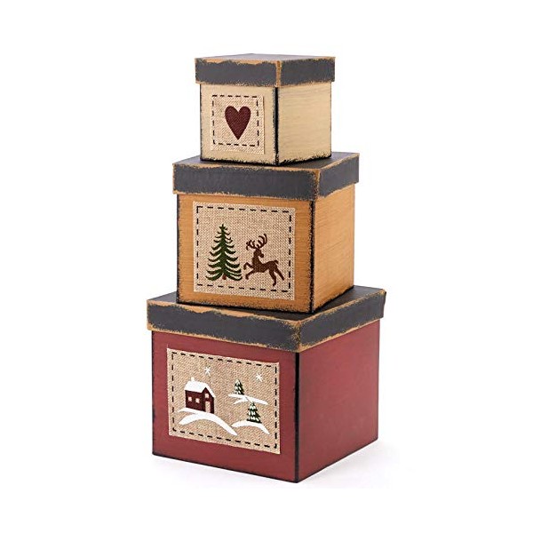 Factory Direct Craft Primitive Wintry Christmas Nesting Box Set | 3 Pieces