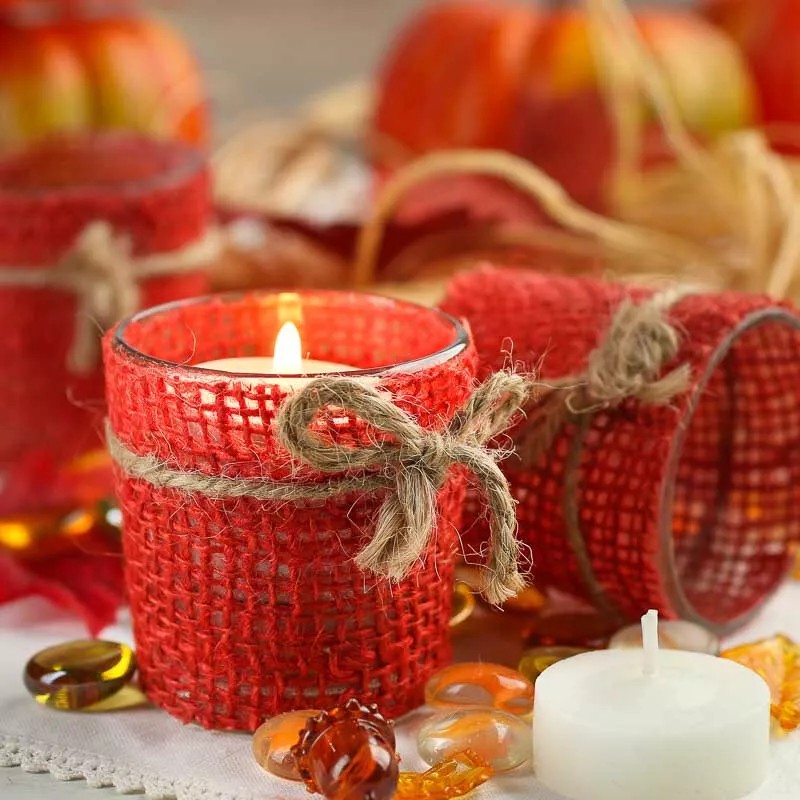 Factory Direct Craft Set of 12 Red Burlap Votive Candle Cups with 12 LED Tealights