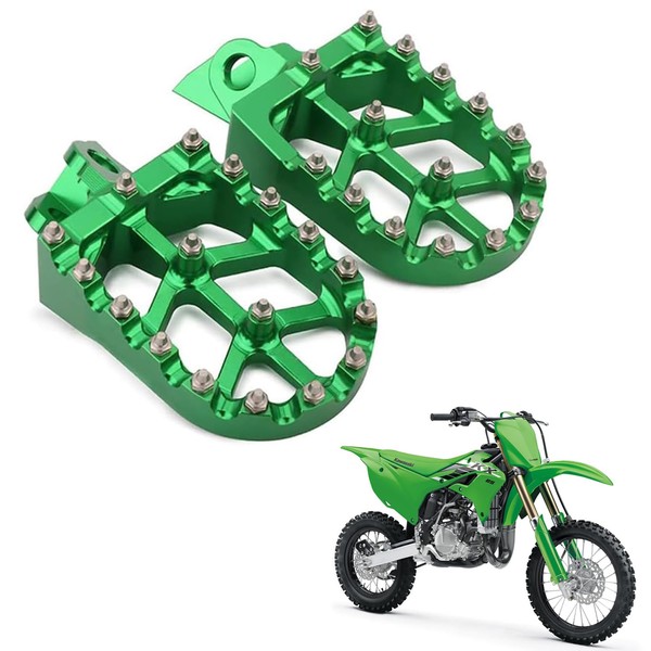 Factory Foot Pegs Pedals Footpegs Step for Kawasaki KX65 2000-2020 | KX80 1998-2000 | KX85 2001-2025 | KX100 1998-2021 | KLX140 2008-2025 | KX112 2022-2025 - 34028-1498-CE 34028-1499-CE (Green)