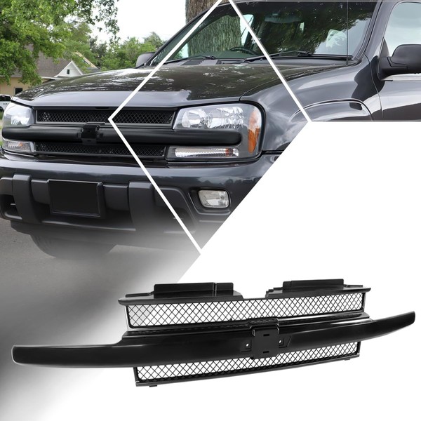 Factory Style Square Mesh Front Bumper Grille Grill Compatible with 02-05 Chevy Trailblazer,Black