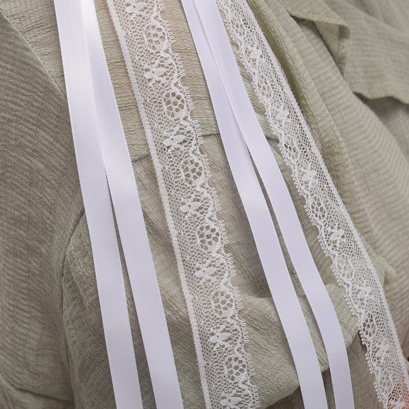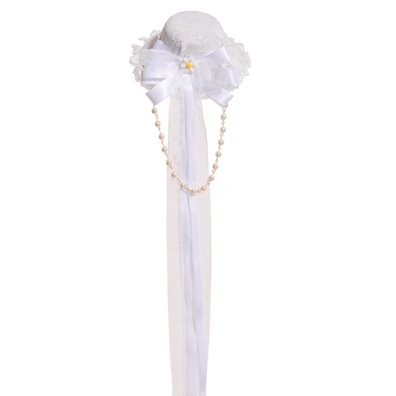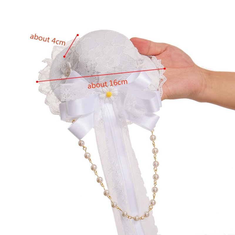 - Decorated with lace edge, bow and forged straps, beaded chain.