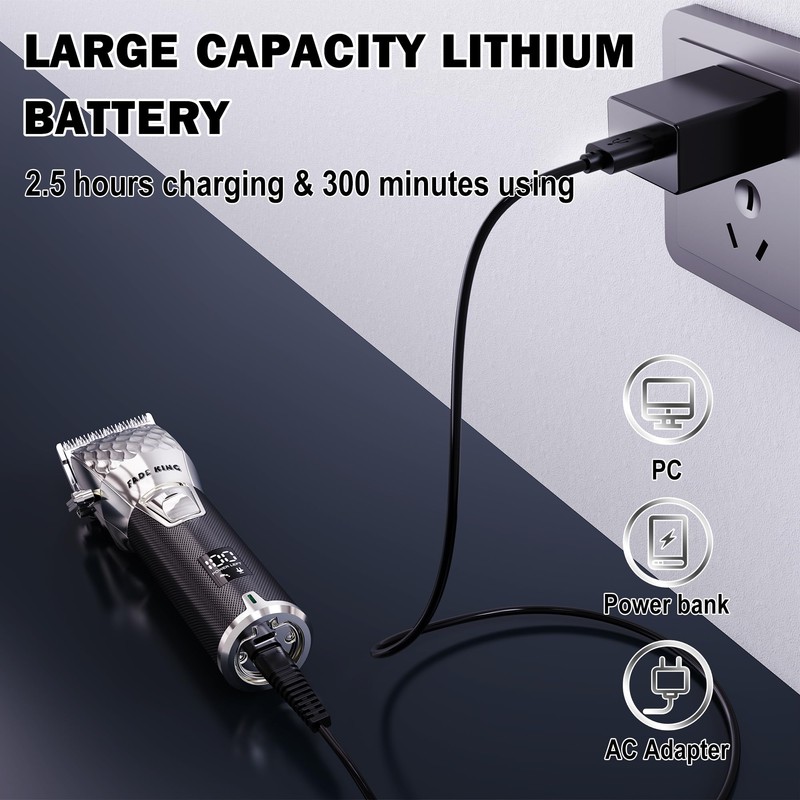 - Professional Precision: The Fadeking hair clippers is engineered to deliver exceptional cutting performance for professional and home use;Designed to create seamless blends during both hard and soft line fading;Features high-precision hair cutting scissors that cater to a variety of styling needs, ensuring excellent results for all users