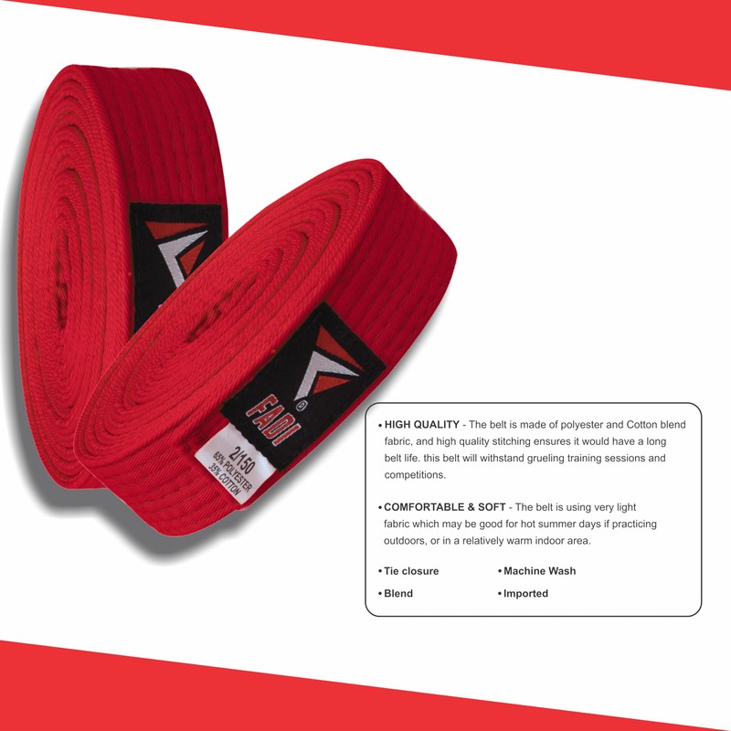 Fadi Sports Martial Arts Belt for Karate, Judo, Aikido and Taekwondo - Durable Cotton-Polyester Blend for Adults and Kids (Red, 5), Red, 5
