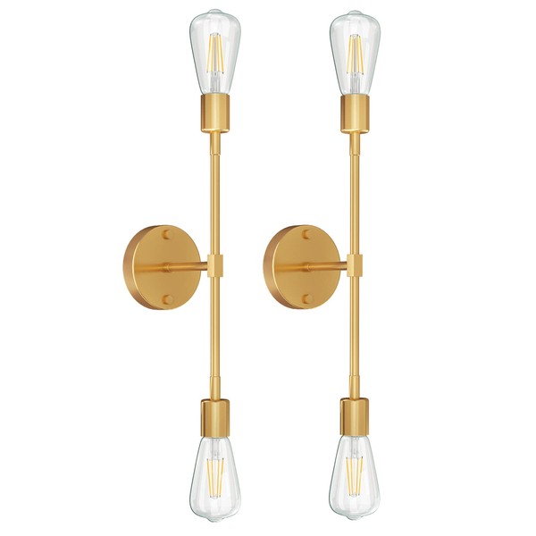 FadimiKoo 2-Light Golden Bathroom Wall Sconces Lighting, Modern Vanity Light Over Mirror, Brushed Brass Indoor Wall Mounted Lamp for Bathroom Hallway Bedside Kitchen (2 Pack)