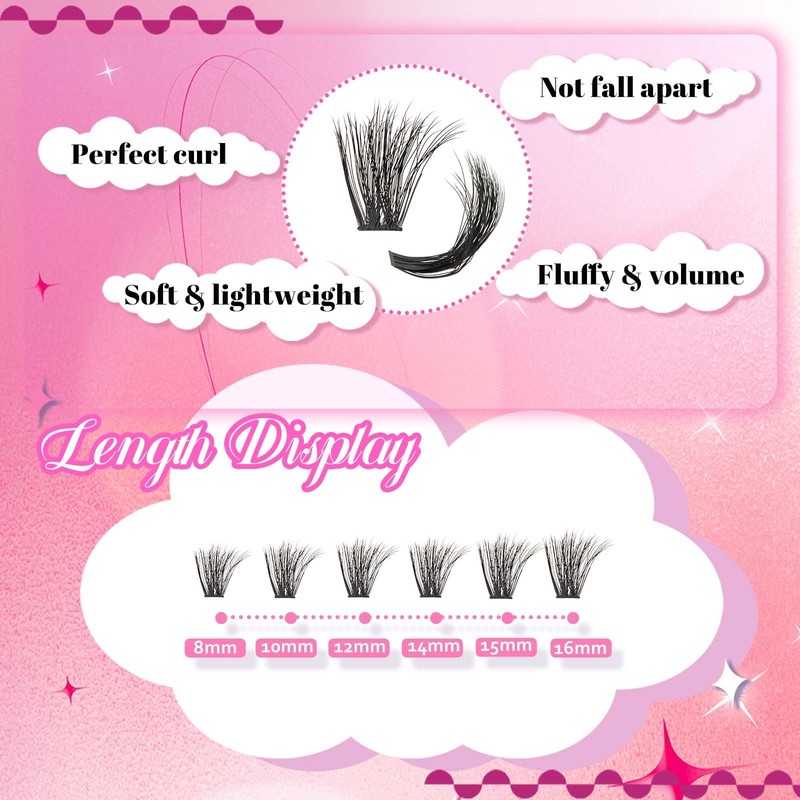 • 🎀【Premium Quality】Crafted with the premium materials, our lash extension kit guarantees exceptional quality. Each lash cluster is meticulously made to ensure a natural look and comfortable wear. Experience the luxury of high-quality lashes that enhance your beauty effortlessly.