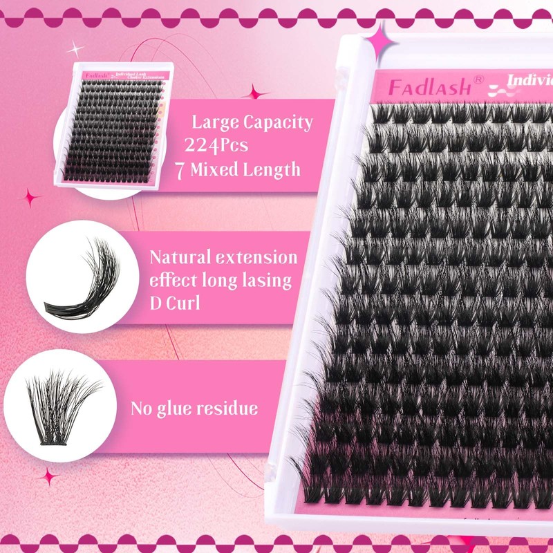 【DIY Lash Extension Kit】FADLASH lash clusters kit includes one tray of lash clusters, lash bond and seal and lash tweezers in one set, no need to get any other lash applicators. Premium lash clusters kit is designed to provide a long-lasting effect, ensuring that your beautiful lashes stay in place for an extended period of time.