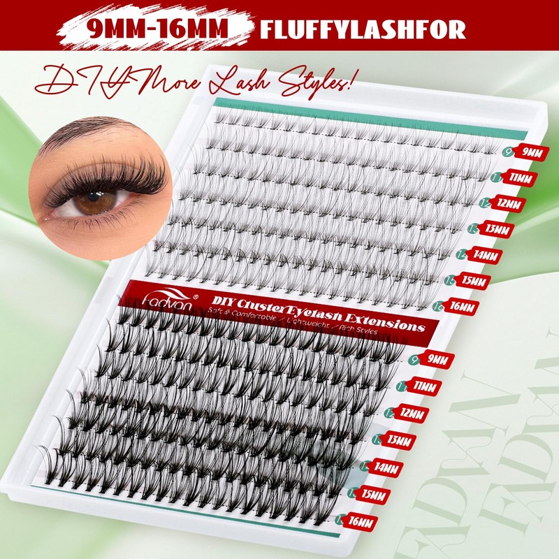 FADVAN Lash Extension 280pcs D Curl 10D+20D Cluster 9-16mm Mixed Individual C...