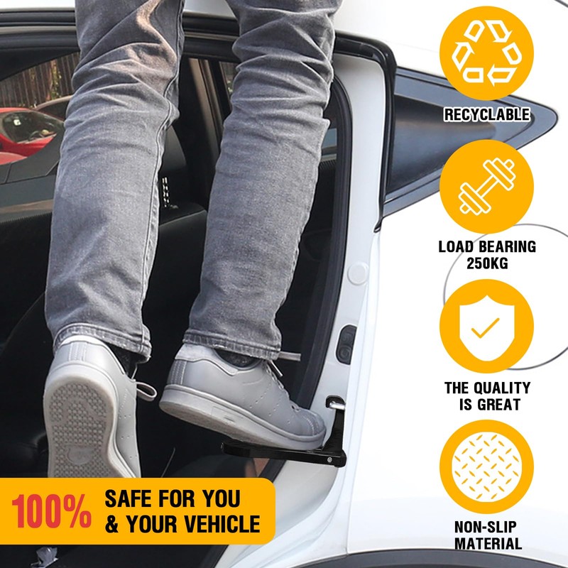 - Compatibility: car pedal door step can be used in all vehicles U-shaped door locks. Perfect for any of your vehicle doors of car, truck, SUV access to roof indispensable step aid for cars.