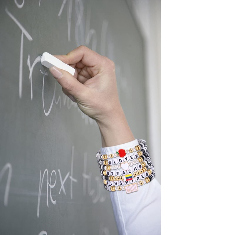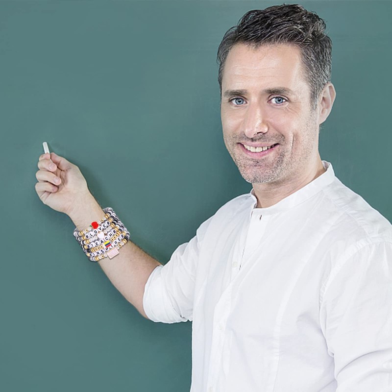 - Comfortable To Wear: Tired of giving teachers the same thing every year? These delightful personalized bracelets will put a smile your favorite teacher's face. Teacher-inspired statement bracelets are made of high quality alloy and clay disc beads and with enamel, imitation pearls decorate, nickle free, lead free, lightweight comfortable to wear