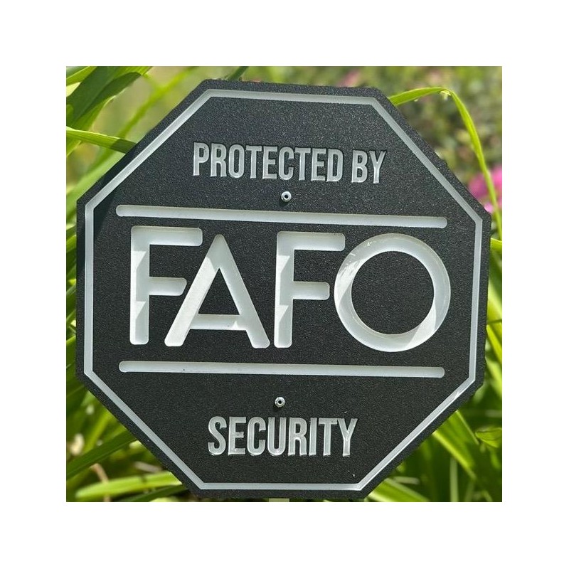 The FAFO yard security sign is a must-have for anyone looking to increase the security of their yard. This sign is designed to be attached to any chain-linked fence, making it easy to install and remove. The sign is made of durable materials that can withstand outdoor conditions, ensuring that it will last for a long time. The FAFO yard security sign is a great way to deter potential intruders from entering your yard. With its bold and clear message, it can make a statement to anyone who sees it. The sign is easy to read and understand, making it a great deterrent for anyone who is looking to break into your home. The FAFO yard security sign is a great investment for anyone who wants to keep their home and family safe. With its easy installation and durable materials, it is a great way to increase the security of your yard. Whether you are a homeowner or a business owner, this sign is a great way to protect your property and your loved ones.