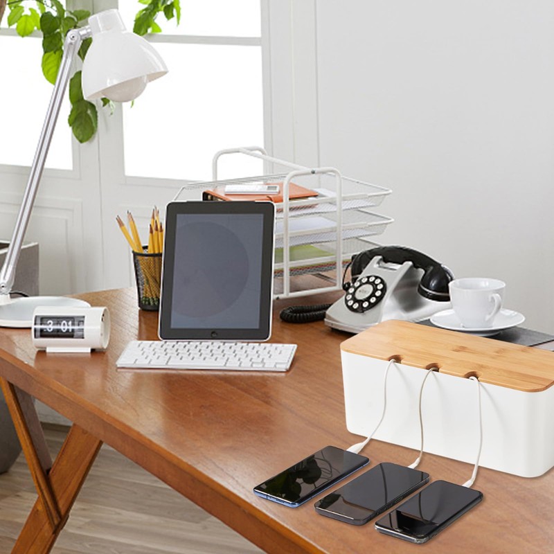 - 【Stylish Design】: With its natural bamboo lid, this cable management box is not only a practical storage solution, but also enhances your decor. The carefully sanded surface ensures that there are no sharp edges, making it both attractive and practical.