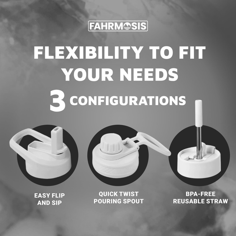 - MULTI-FUNCTION LIDS: Choose from three convenient lid options—a Flip Up Straw Lid for quick sips, a Screw Top Lid with Hinged Handle for a high volume pour, and a Straw Lid for a stainless steel straw. This stainless steel water bottle with straw adapts to your lifestyle, making it the ideal metal insulated water bottle for all your adventures.