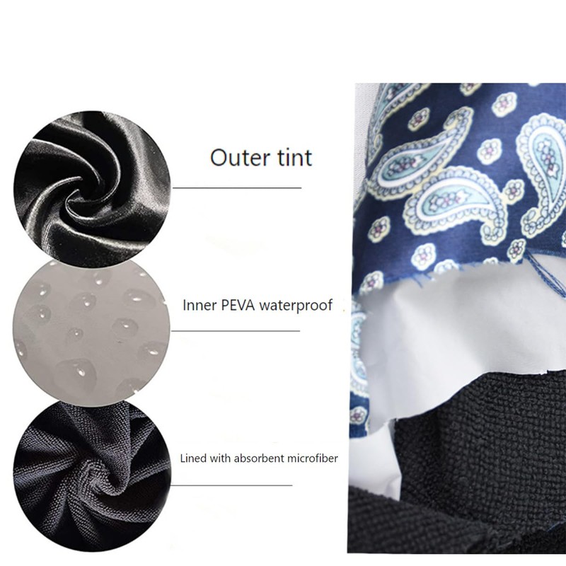 FAILOO Three-layer 3-in-1 shower cap Bath waterproof cap Extra suction hair drying cap Bathroom caphair shower cap Dry cap black satin with elastic, A reusable shower cap for women's long hair that can be used both dry and wet,One comb for smooth hair