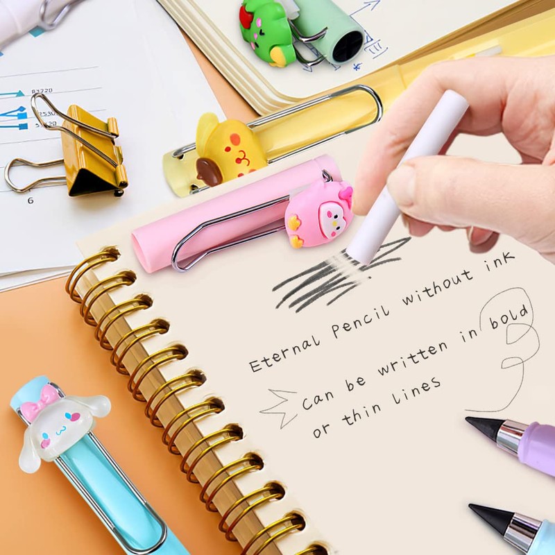- 1. Eternal pencil set: a total of 6 eternal pencils everlasting and 6 eternal pencil replacement leads are included. Each pen contains an eraser inside. This ink free eternal pencil is easy to remove and replace the pencil lead for long-term use.