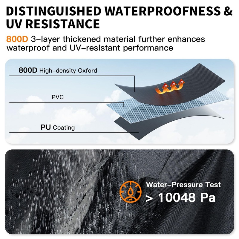 - 800D Heavy Duty & Super Waterproof Bike Cover: Crafted from premium 800D Oxford fabric with PU coating, Faireach bicycle cover offer exceptional durability and waterproof protection. During long trips, it can effectively resist rain, dust, and UV rays, providing all-around protection for your bicycle.