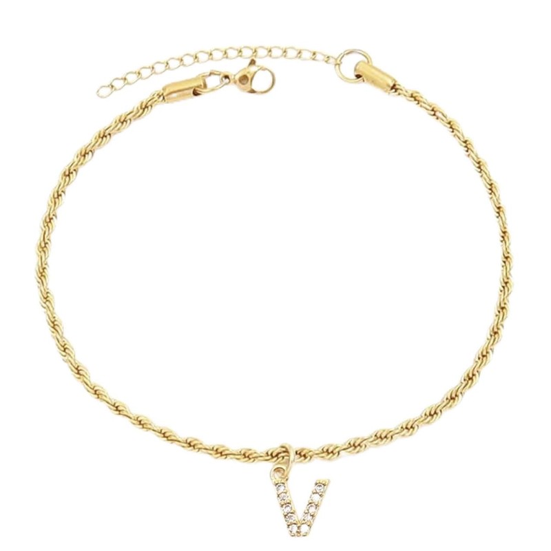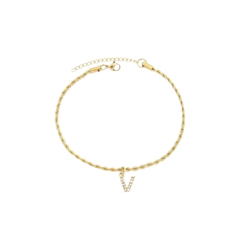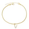 FAIRY GLINT V Initial Rope Chain Anklet – Vibrant Crystal Letter Charm Jewelry for Women, Personalized Elegant Keepsake