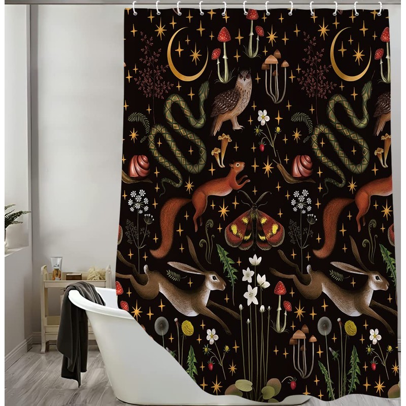 Fairy Rustic Forest Shower Curtain for Bahtroom, Country Woodland Wild Animals Butterfly Mushroom Set Hunting Shower Curtain, Farmhouse Rustic Cabin Lodge Shower Curtain Set with Hooks 70X70IN