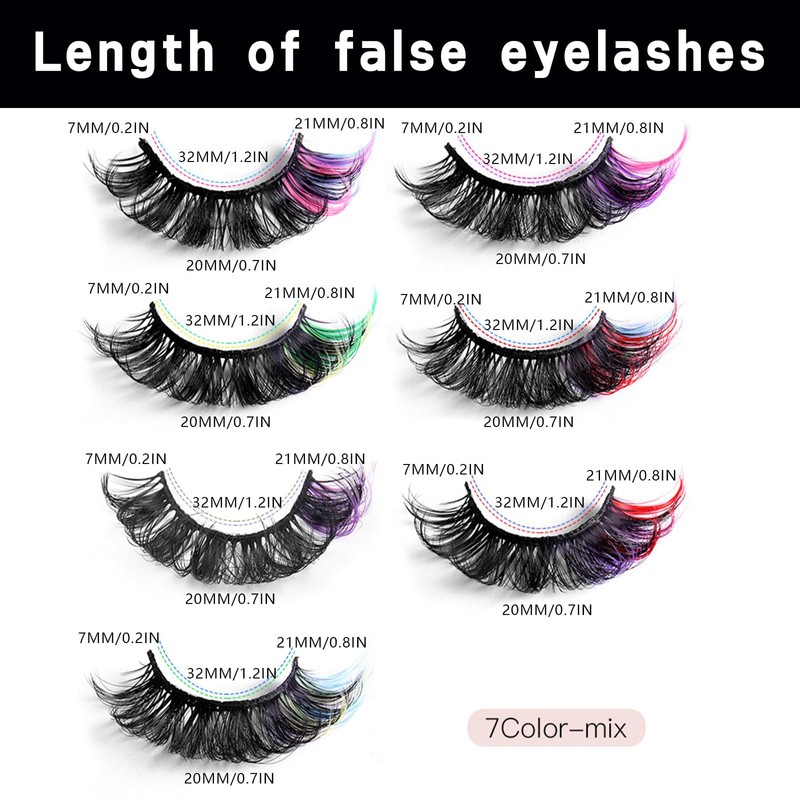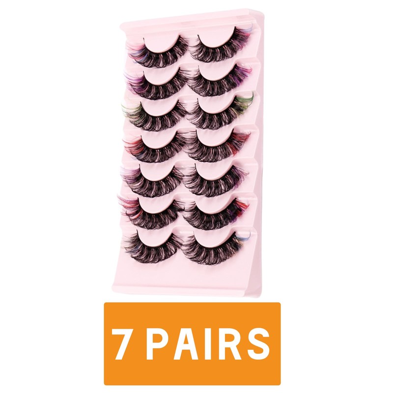 FAIRYGATE Russian Eyelashes Colored Lashes 7 Pairs 5D Faux False Eyelash Fluffy Dramatic Strip Lash Fluffy Wispy for Christmas Halloween Party Cosplay C1813