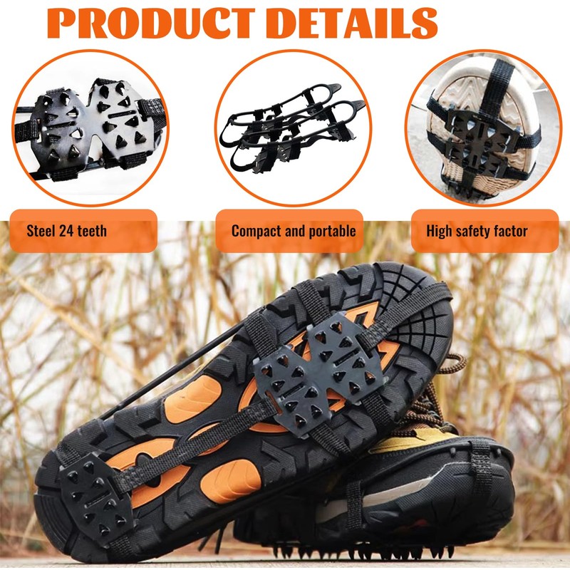 - 3. Non-slip and drop-proof: The spikes for winter shoes are equipped with 18 or 24 spikes to ensure even weight distribution and thus ensure excellent grip and long-lasting comfort.