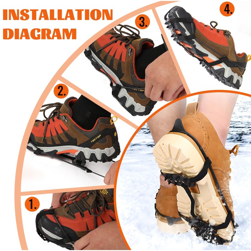 4. Shoe claws for winter shoes are ideal for ice fishing, hunting, walking, jogging, hiking, running, snow shoveling, etc., so you can enjoy walks and sports in the cold season.